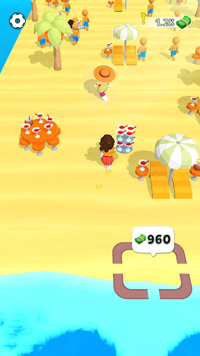 A cocktail waitress serves drinks Build, sell and expand your Bar Attract as many customers as you canKeep Hawaii Bar open as long as possible!