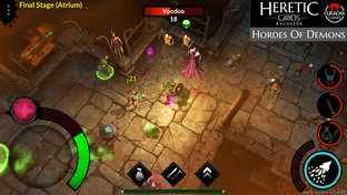 Heretic Gods features an intuitive control system, tailored specifically for touch devices. You can move your character with the virtual crossbar on the left of the screen and attack and use skills with the buttons on the right. Just press the attack button and your hero will automatically target the nearest enemy.
