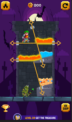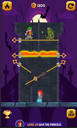 Pull the pin to make a safe path to the Hero. Become a hero of you Kingdom. Over 100 difficult levels are waiting for you. Pull the pin to kill the goblins, to save the princess, to get the treasure chest etc. Don’t touch the Lava otherwise you will die.