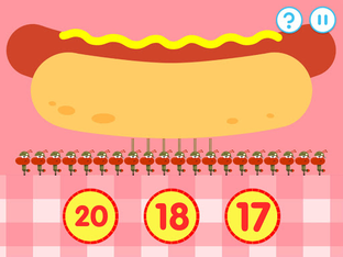 • Identify the number that shows how many ants are holding up the hotdog. You'll also need to choose the correct number of penguins, rabbits and birds.