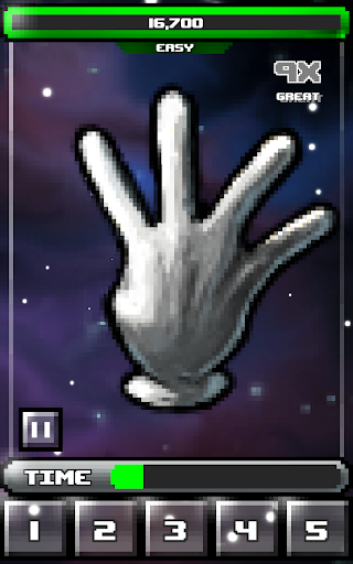 HIGH FIVE! is an adventure game that challenges your perception and mental acuity amidst a cosmic universe. The game centers on a striking gloved hand that inhabits a void area and your mission is to calculate the number of visible fingers in each formation before the clock ticks down.