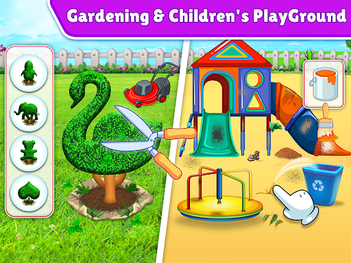 Clean children room by fixed wall and make the paint and put the toys at right place. Explore the new toy room in the house.