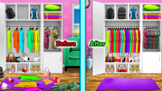 In this restock closet organizer game offline you have to restock each drawer, dressing table and makeup box. First arrange your dresses in the biggest portion with closet sort skills. Then fill the shoe space with perfect sorting puzzle games skills. Fill the room with perfect planning and leave no closet unorganized.