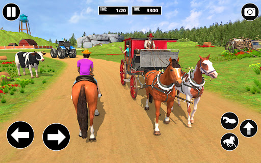 In this game simulation, two horses are attached to the cart, you can pick tourists on horseback or passenger carriage and take them to the required destination in horse carriage games. This is a double horseback taxi driving game. In this wild horse transport simulator game, transfer the people across the beautiful hill stations and old towns. In this latest Farm Horse Cargo Cart Transport game, you have to pick up the passengers and drop their correct destination.