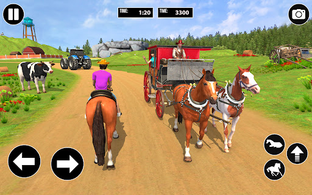 In the ultimate horse carriage driver, the cargo delivery man transports the food by the mountain off roads and bumpy dirt roads. The township taxi cab driver collects town taxi fares in the wild horse rider game. Drive horse cart to pick up the passengers on the hilly path.