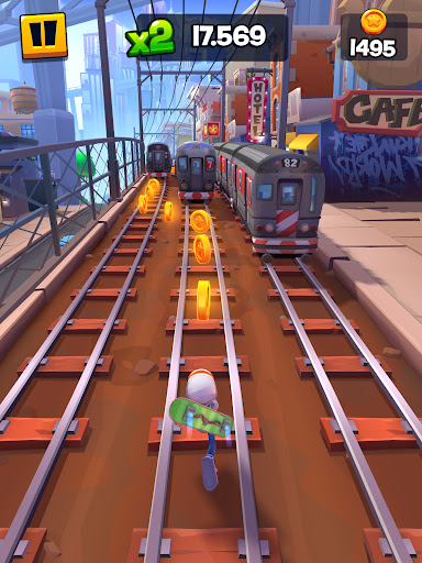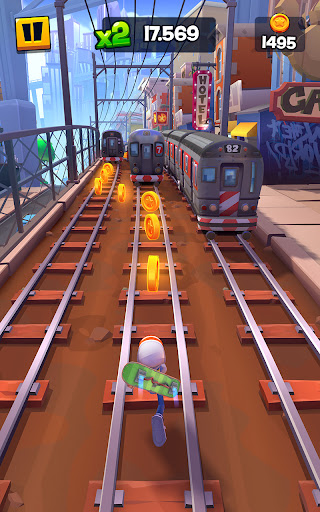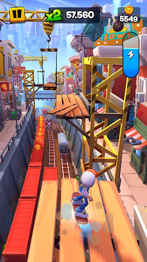 Collect and upgrade surfers, achieve new heights by using the Bouncy Tarps, and charge and activate your hoverboard for a great boost!