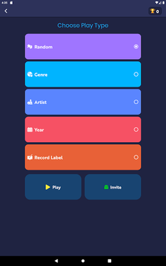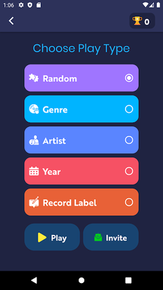 Based on your choice of play type, within 15 Seconds of song play, you decide which is the correct Artiste/Record Label/Genre/Year of Release