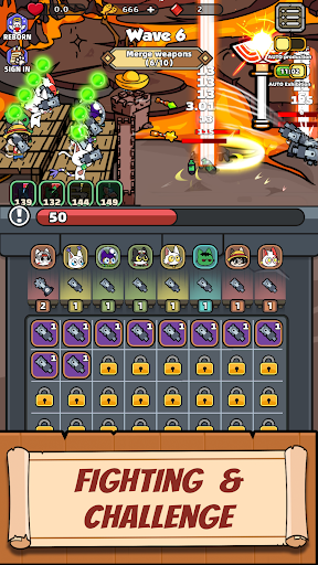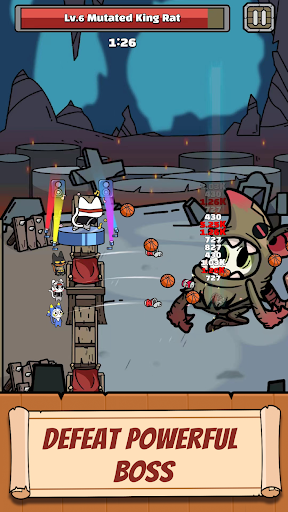 In the game, the cat warriors defend their kingdom from destruction, so they build a wall that can withstand the enemy! But the weapons they have now won't be able to defeat the constant influx of monsters!