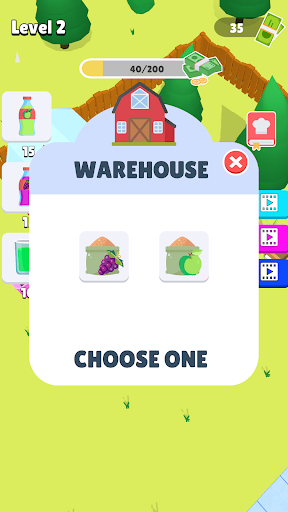 On your juice farm you can grow fruits and vegetables like apples, oranges, grapes, and even wheat. Prepare milk shakes, soda, juices and more delicious and healthy drinks out of those ingredients.