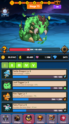With more than 50 distinct heroines to choose from, keep adding to your collection without any hassle. You can capture and evolve over 20 adorably cute pets who'll give you a commendable advantage in the game. Build a magnificent and totally unique idle town that's entirely your creation.