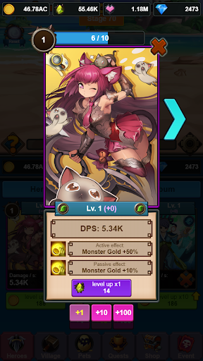 Idle Heroines is the ultimate idle game that lets you recruit the most spellbinding heroines to defeat menacing monsters. With the option to collect and advance charming pets, you can amplify your stats and surpass the competition to obtain the top rank on the leaderboard. Take part in events and unveil the grand prizes that await you!