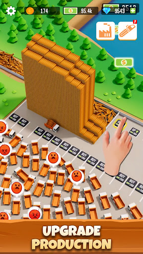Idle Lumber Empire: Build and manage a sawmill, grow and harvest forests, upgrade machines, maintain vehicles, attract new clients, and boost income.