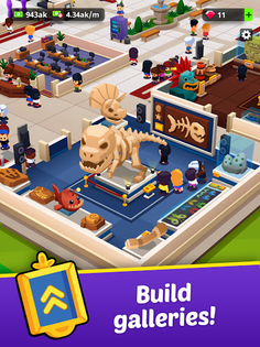 Manage and optimize resources like a business management simulator game and build now your art empire! Start with a small gallery, get visitors into the Museum, sell tickets to earn money, invest your earnings to buy new sets of cool art collections, and build more themed galleries!
