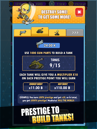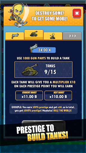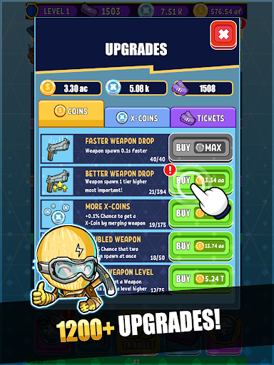 Get ready to build the ultimate weapon collection in Idle Royale Tycoon - Incremental Merge Battle Game. Download this amazing Merge based sliding block puzzle game and unlock the potential of collecting over 400 epic weapons. Merge, discover and upgrade in order to maximize your idle profit and create your very own Battle-Royal Weapon Collection.
