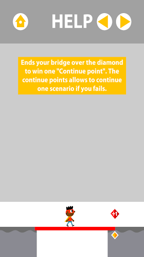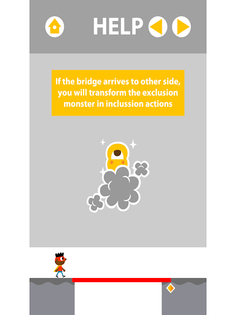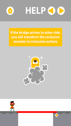 To play the game, hold your finger on the screen to extend the magic bridge. If the bridge reaches the other side, you can transform the exclusion monster into an inclusion action. It's also worth noting that ending your bridge on the red diamond will earn you a "Continue point" that can be used to continue a scenario if you fail.