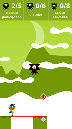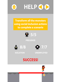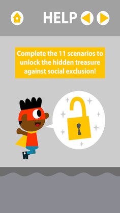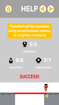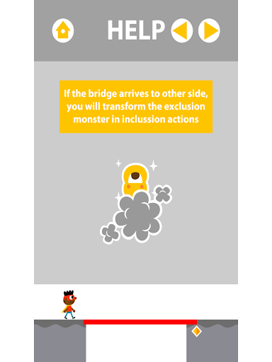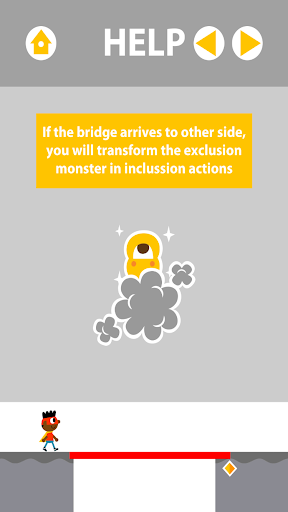 The premise of the game is that social exclusion monsters have attacked the planet, and it is up to you, as a superhero with construction abilities, to thwart them. You can transform the social exclusion monsters into social inclusion actions using your magic bridges. To unlock the hidden treasure against social exclusion, you need to complete 11 different scenarios around the world.