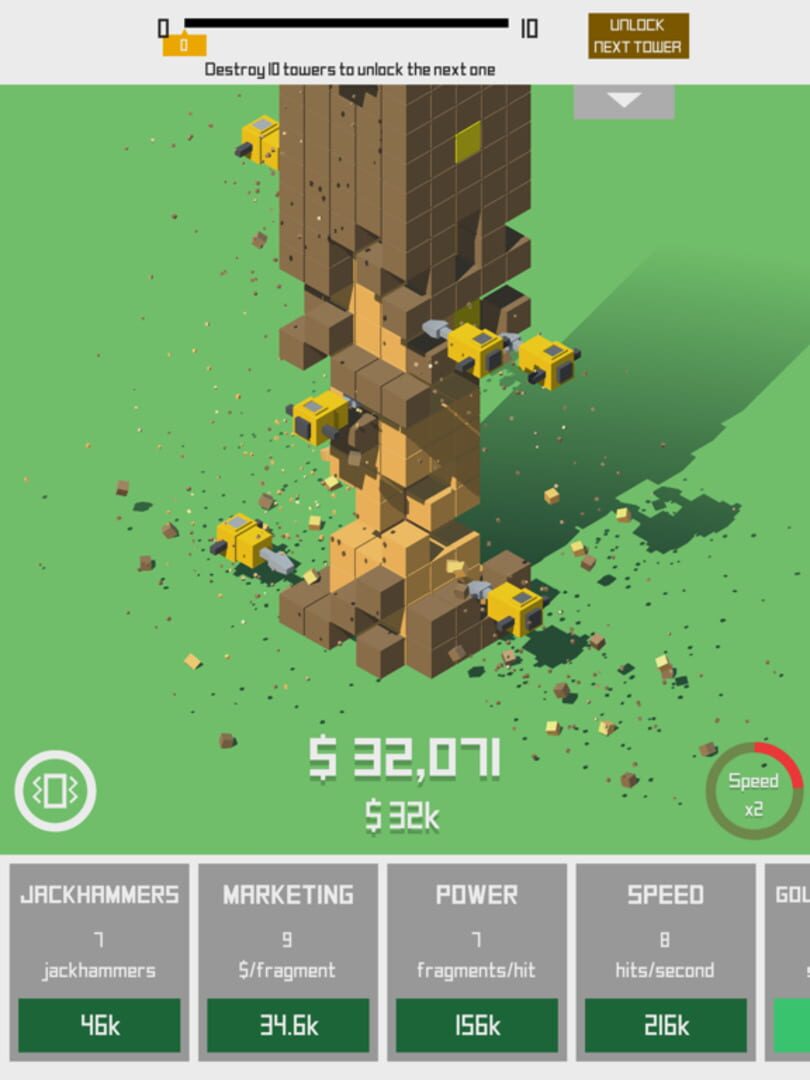 Create an unstoppable battalion of jackhammers, polish them with upgrades and wreak havoc by obliterating numerous towers!