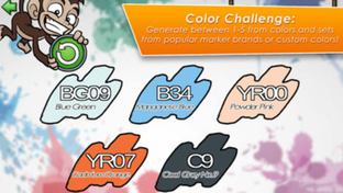 In the Single Play Mode, you can choose from eight idea generation and art practice games that will help you harness your creativity and develop your skills. For instance, in the Color Challenge game, you are limited to using one to five colors to complete your artwork. You can add markers by brand and color to your profile, and the game generates the color palette from those included materials.