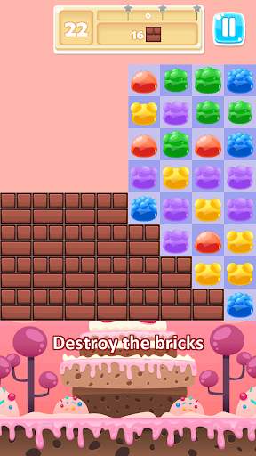 Get special jellies by breaking four or more in a line, then combine them to destroy entire columns or rows. One hundred levels to enjoy with different mission types. Popping jellies, destroying bricks, or collecting fruits are just some of the levels you'll find in this awesome match 3 game.