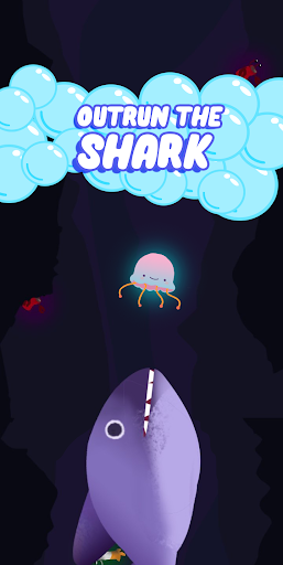 Our Jellyfish friend is very hungry thus it went for a swam to eat its favorite food, “fish eggs” as it swims suddenly a big menacing shark tails our little friend to catch up our little jellyfish. The jellyfish swims very fast trying to out run the shark but be careful of the hazards in the way because they tend to slow our little jellyfish friend