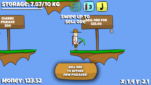 Upgrade your pickaxe up to 28 times to dig through obstacles and delve deeper and deeper into the unknown. Sell the minerals you've mined to earn money to help you purchase new pickaxes and other necessary equipment. Keep your ears sharp for the hum of dynamite as you use it to blow up pesky obstacles that stand in your way.