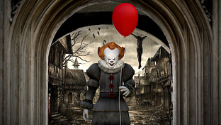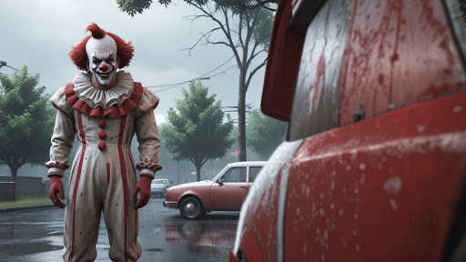 - Thrilling actions as horror scary clown.