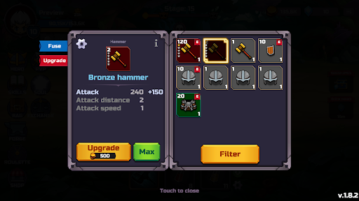 No gear in the shop makes the game the true free to play, enjoy it! Each resource needed to upgrade a hero can be looted from monsters and bosses.