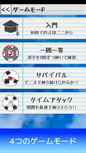 Search for hidden kanji through a peephole in this fun smartphone game. Practice and compete in four game modes, including survival and time attack.