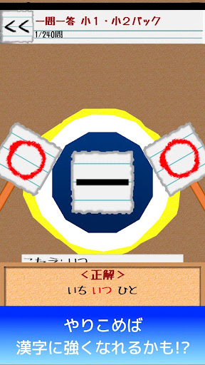 In Question and Answer mode, you'll clear Kanji quizzes one question at a time. There are no time restrictions so you can enjoy at your own pace. Perfect for practice!