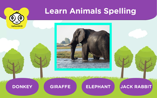 • In Identify spelling game kid will see a picture of any Animal and the name of that Animal will be spoken, just click on the correct name.