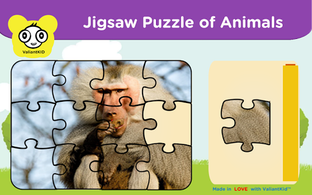 • Jigsaw puzzle of known Animals to wild Animals like Cat, Dog, Lion etc.