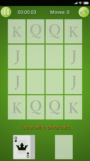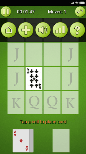 This solitaire game is unique in its game play. The aim is to move all face cards to its designated spots in a grid-like tableau to win.