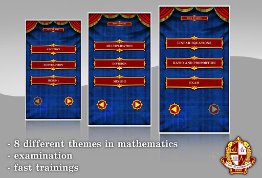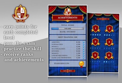 Apart from the main progress, the game gives you the opportunity to train in the mode "Fast training". In this mode, you will be answer to random questions from all topics in mathematics. Practise, improve their mental abilities, sharpen the intellect!