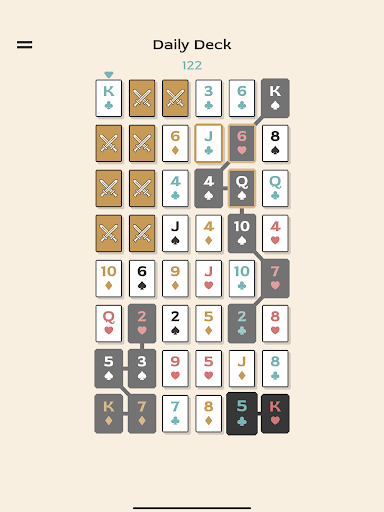 King’s Path Solitaire presents you with a challenging puzzle that requires finding a descending path starting from each King. The aim is to create a path that touches every card on the table. This unique take on the classic solitaire provides a quick and easy game-play but plenty of analytical challenges.