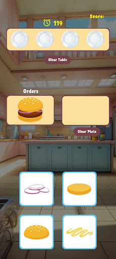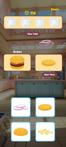 Complete your given orders with the ingredients available to you. Drag and drop ingredients to the serving plate to begin fulfilling the order. They must be placed in the correct sequence, from bottom to top.