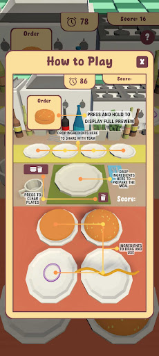 Your teammates will need some ingredients that you have. Drag and drop the ingredients to the center table to share it with everyone. If you need an ingredient, ask your friends for it and drag the ingredient from the center table to your serving plate.