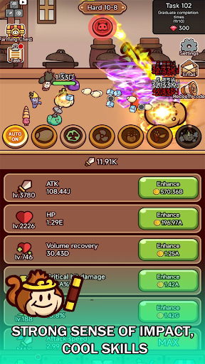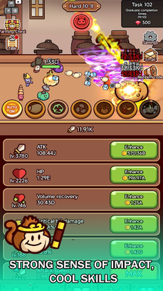 Endlessly strengthen your ingredients, their equipment, and skills to become an unstoppable warrior. You can equip your ingredients with various accessories and items to enhance their power and charm. Furthermore, you can learn various cool skills to excel in battles.