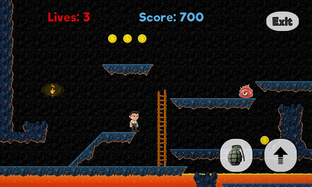 Guide your adventurer through the lava caves, looking out for pesky monsters and rising lava (and cool camera effects e.g slow mo sliding and blue steel crouching).