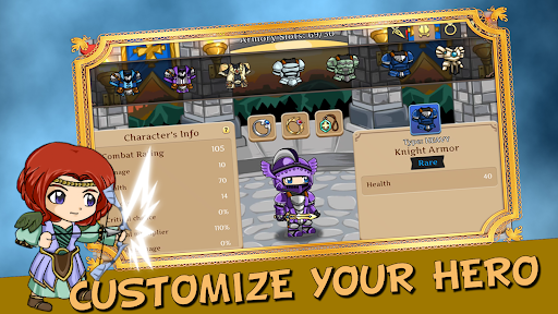 With a lot of weapons, armors, jewelry and gems can be used to upgrade your hero in this casual RPG game.
