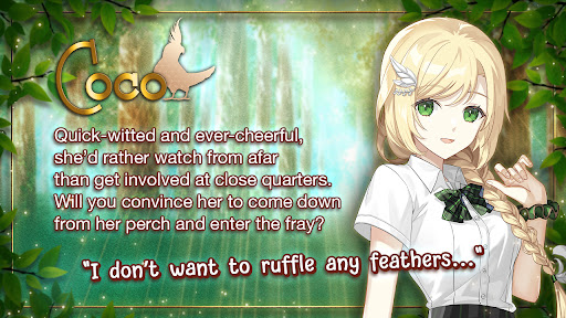 Coco is the least powerful of the three but possesses an unmatched strength of heart. She is witty and cheerful and prefers to watch from afar. You must persuade her to put her feet on the ground and join the battle.