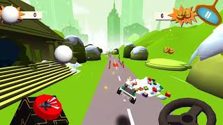 Wonder Woman™ uses her stalwart sword and shield to defend against the villain Doomsday™, who has powered up his Mighty Micros car and is hurtling towards her with his club. Can you help her expertly navigate around Doomsday™ and thwart his evil plans?