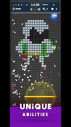 Break lego bricks immediately earn gems and unlock new skills for balls! Shoot balls and break bricks to solve puzzles in a variety of layouts! Enjoy a unique brick breaker game with challenging levels and lots of fun!