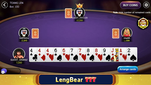 LengBear 777 have lot of free card games with the smooth UI and high graphics quality We have outstanding features for you: - Popular Khmer card games: Teang len, Baccarat, Kla-Klouk, Sab sam and more Let's download and enjoy the Khmer games, and don't forget rating if you like it