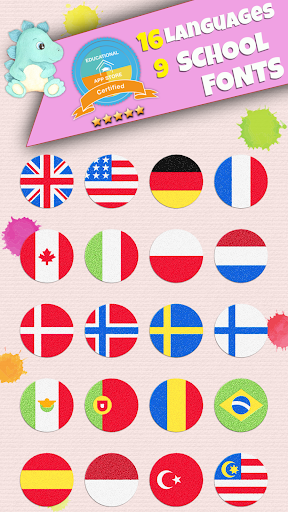 • 16 funny sticker rewards that will unlock after progression milestones are reached. Writing practice made fun.