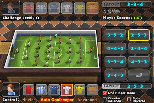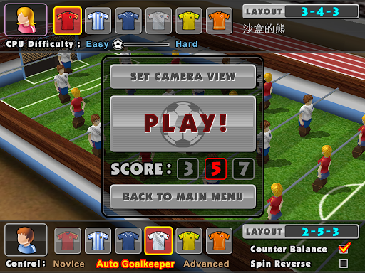 Realistic physics engine can represent the collision and rolling trajectory of football and figures. Switch to any view you'd like and select your favorite layout. Let's start a foosball match in your own style!