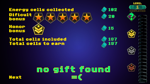 The objective is simple, to reach level 20, for that you use a teleportation machine that takes you up one level, to advance you collect the necessary cells, and return to the teleport machine, there you decide, to return home with your reward, or go to the next level and risk losing everything.