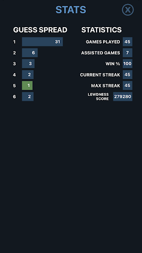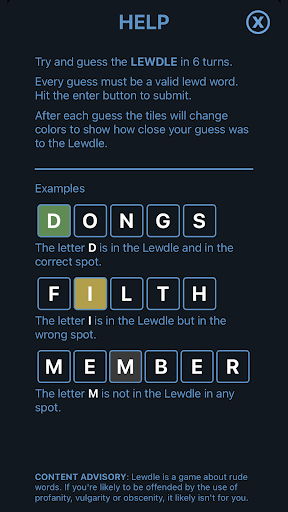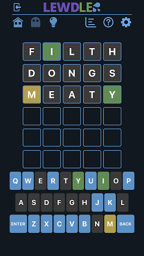 Every guess must be a valid lewd word. Hit the enter button to submit. After each guess the tiles will change colors to show how close your guess was to the Lewdle.