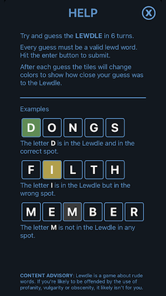 Try and guess the LEWDLE in 6 turns.