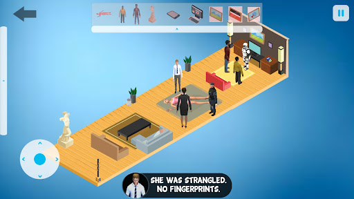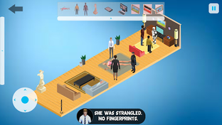 Investigate and solve murder mystery by exploring the crime scene, finding clues and interrogating suspects.