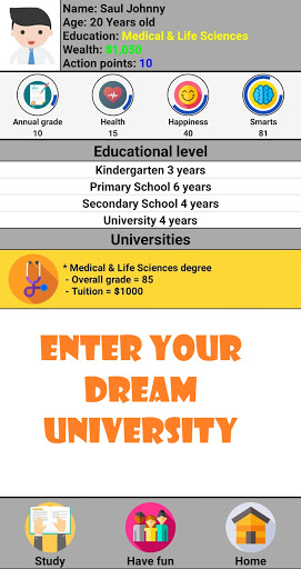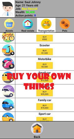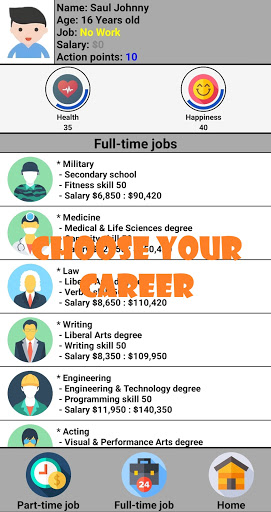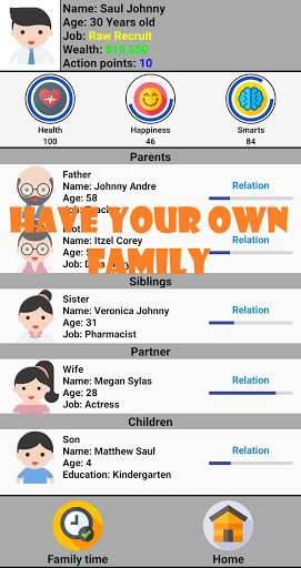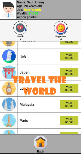 Life simulation game, full of events and adventures, from your childhood till your adulthood, manage your education, career, skills, marriage and kids, travel the whole world, buy valuable things , and get your dream house.